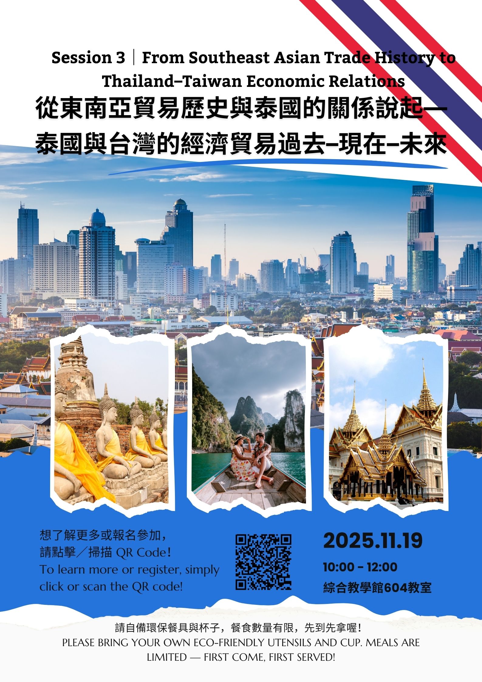 講題: 從東南亞貿易歷史與泰國的關係說起——泰國與台灣的經濟貿易過去、現在與未來